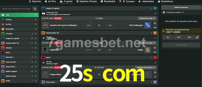 O 25s com oferece uma grande seleção de opções de apostas em e-sports com probabilidades competitivas
